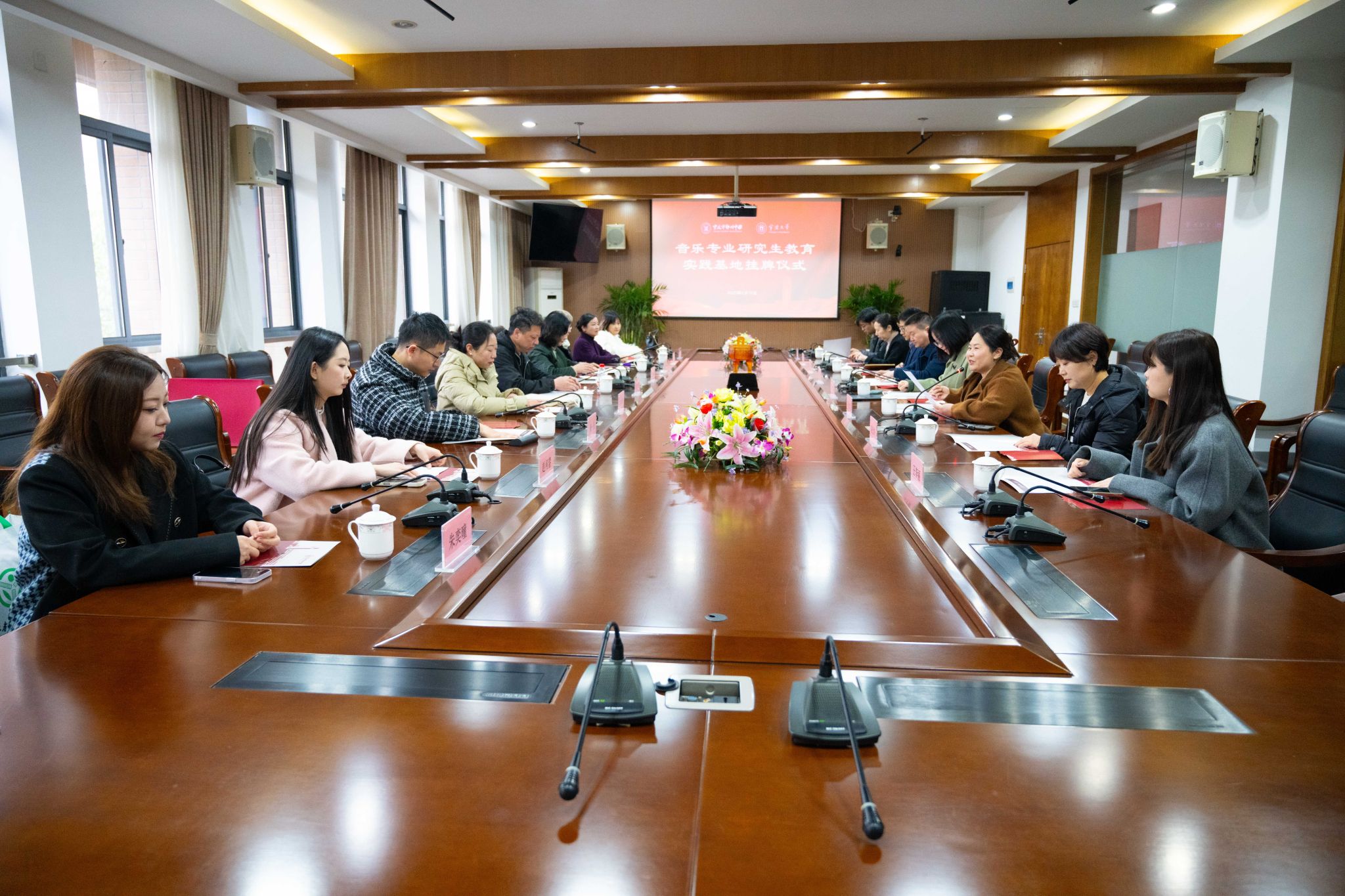 鄞州中学校长王仕杰介绍了鄞州中学艺术教育情况,他表示鄞州中学一直重视艺术教育,拥有良好的音乐教育基础和浓厚的艺术氛围,此次合作将助力中学艺术课程创新与师资提升,双方围绕研究生实习指导、艺术课程开发、课题联合研究等议题达成共识。宁波市音乐教研员宋萍萍也发表了讲话,对双方的合作给予了肯定和赞扬。