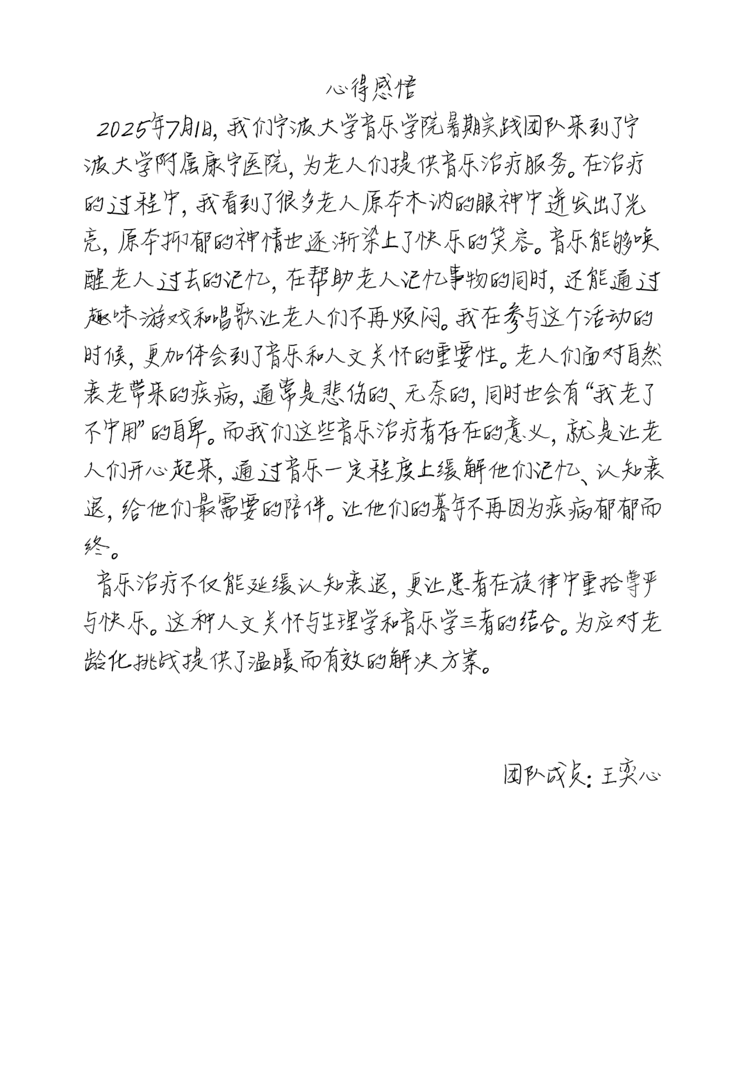 “以音筑爱,疗愈康宁”暑期实践团队正是基于这一背景,走进宁波康宁医院,聚焦老年患者需求,采用怀旧式音乐治疗方案开展实践服务,旨在通过音乐的力量为老人搭建心灵疗愈的支持网络,助力守护老年群体的心理健康。