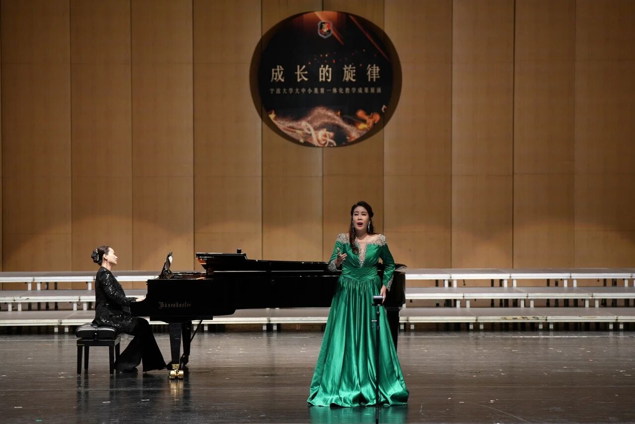 美育一体篇则更侧重“大中小学一体化”的融合教育,由音乐专业师生与镇安小学、四明中学、鄞州中学共同演绎,从略带俏皮的小提琴重奏《牛虻前奏曲》到感人至深的表演唱《星星点灯》,再到高水准合作的中国民族室内乐《敦煌新语》,展现了“美育一体”教学实践的多学段丰硕成果。