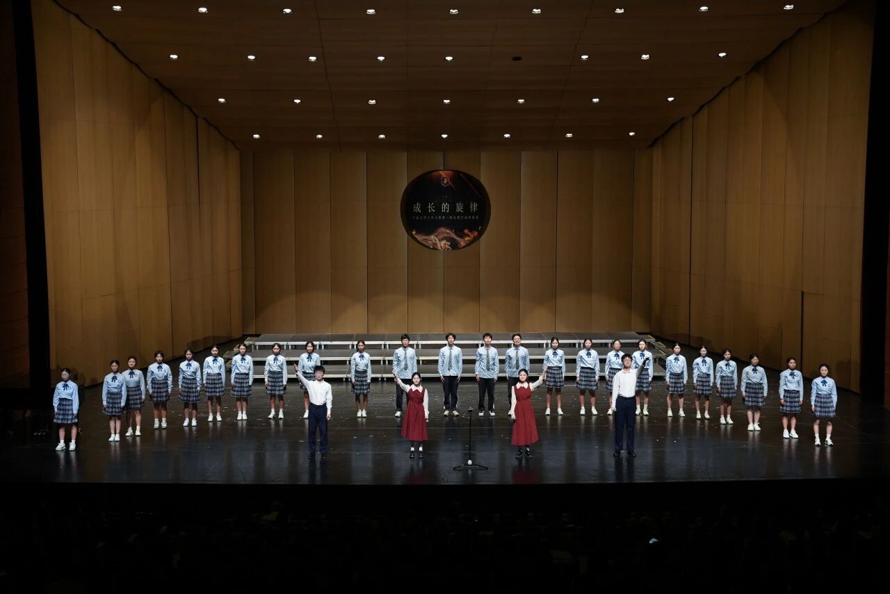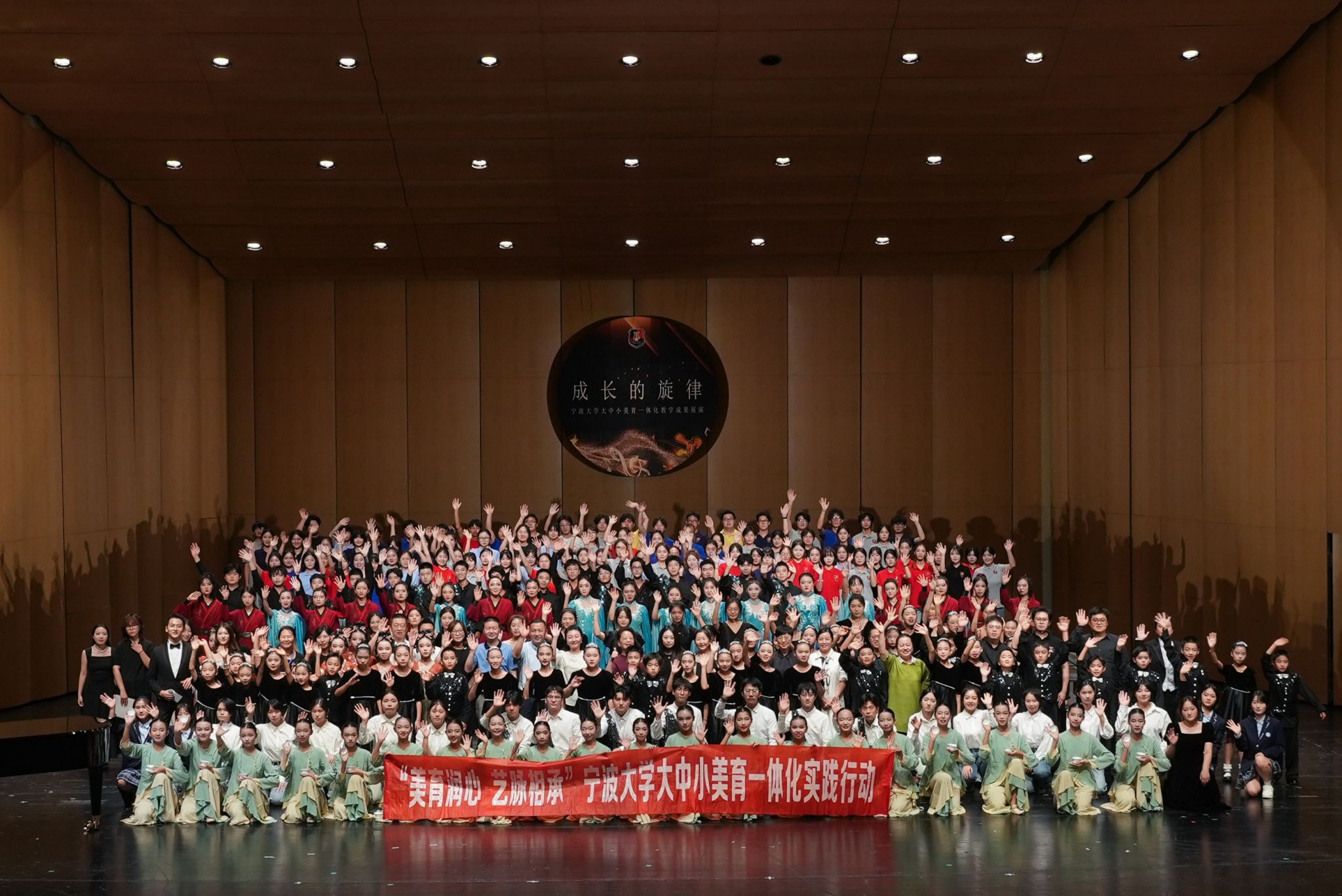 主办、宁波市教育局教研室协办,宁波市鄞州中学、四明中学、外国语学校(浙江省八一学校)、镇安小学共同合作的“成长的旋律——大中小美育一体化教学成果展演”在宁波文化广场大剧院隆重举行。这不仅是一场“大中小学”协同演绎的艺术盛会,更是麻豆在线
