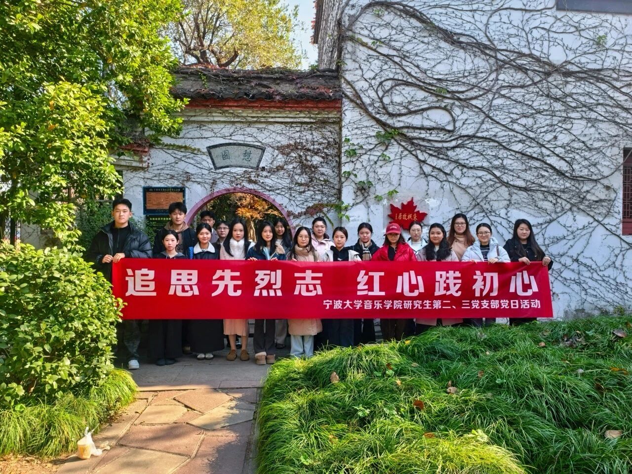 研究生第二、三党支部近日联合开展“追思先烈志,红心践初心”主题党日活动,组织党员们走进朱枫烈士故居(憩园),实地追寻革命先烈的奋斗轨迹,感悟隐秘战线的忠诚与坚守。