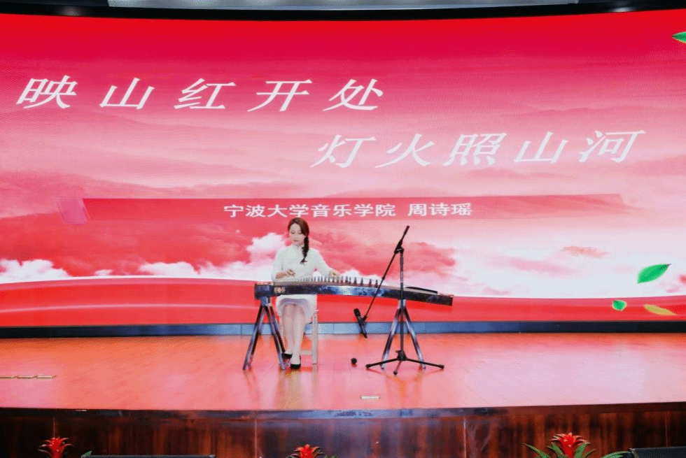 2026年“新时代真理的味道·宁大潮音”思政微课公开巡讲活动在真诚图书馆报告厅举行。我院青年古筝教师周诗瑶凭借作品《映山红开处,灯火照山河》脱颖而出,荣获特等奖并受邀公开巡讲,以音乐为桥,奏响思政与艺术交融的动人乐章。