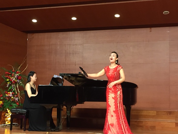 晚7时,在一曲《美丽的西朗卡普》的欢快优美旋律中,音乐会拉开帷幕,张建国教授的得意门生陈诗意、金叶、孟倩、郑慧元、邬梦婷、张岚、刘室麟、张艳、曾广正等为宁大师生倾情奉献了《高山流水》、《昭君出塞》、《关雎》等极具中国古典魅力的艺术歌曲;《故乡是北京》、《我爱这土地》、《春天的芭蕾》、《海峡写意》等当代创作的歌曲则将爱国热情表现得淋漓尽致;《耳边响起他的声音》、《卡迪斯城的姑娘》、《爱的小径》、《被禁止的爱》、《静卧在芙蓉帐里》等西方艺术歌曲与歌剧咏叹调,则使听众深切感受到别样的异域风情与高雅的艺术格调。18首风格迥异的歌曲在张建国教授学生的演绎下,或轻灵活泼、回味悠远,或高亢明媚、大气恢宏,他们那灿烂的音色、扎实的演唱功底和良好的艺术表现与二度创作震惊四座,观众纷纷颌首赞许,并毫不吝惜自己的掌声。在全体演员共同演唱的《为你歌唱》的动人旋律中,音乐会在一片热烈掌声圆满结束。(黄敏学)