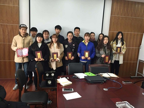 会上,辅导员徐德猛对有突出贡献的12名优秀学生干部进行表彰颁奖。分团委副书记蔡箐箐进行了15年度工作总结,辅导员徐德猛提出了2016年团学工作三个要点。在表彰大会的最后,院长助理陈煜作了讲话,他首先向获奖者表达了衷心的祝贺,并分析了麻豆在线