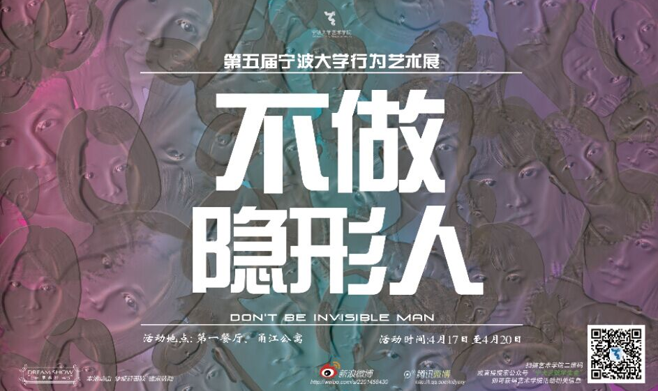 据悉,本次活动的寓意在于:现实生活中,即使在校园里,随着时光的流逝,自己越来越找不清楚方向,会越来越趋于现实,变成现实生活中的一个透明人,“不做隐形人”行为艺术展为了呼吁大家寻找属于自己的色彩,不要做现实中的透明人。