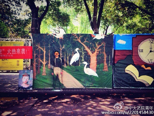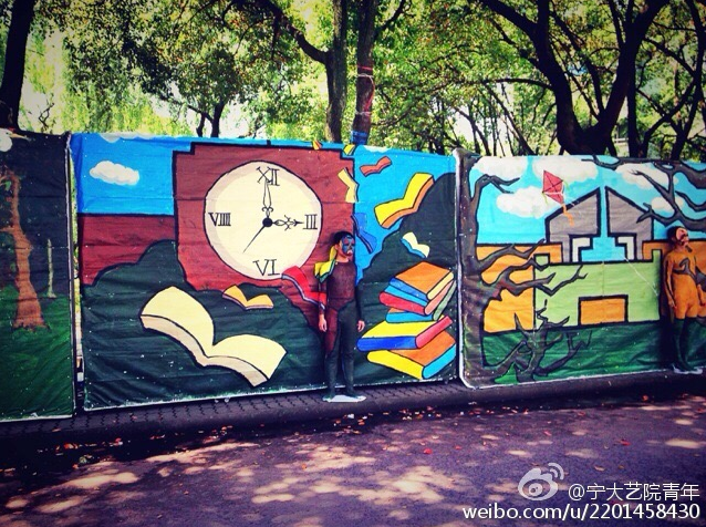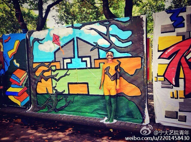 艺术学院主办的第五届“不做隐形人”行为艺术展在第一餐对面拉开帷幕。