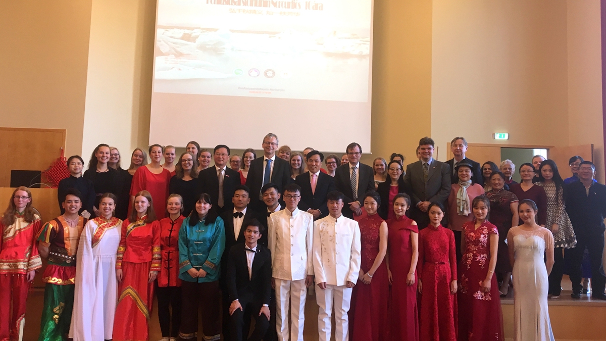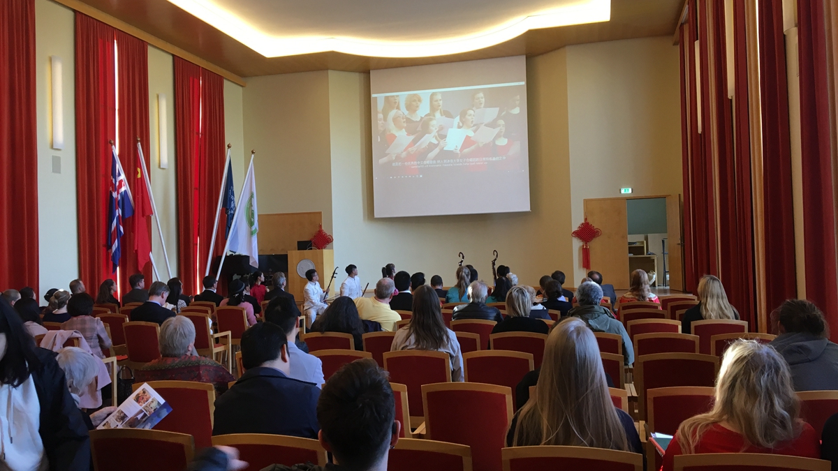 师生赴冰岛参加北极光孔子学院成立十周年院庆典礼。中国驻冰岛大使馆金智健大使,冰岛大学校长尤阿特里,麻豆在线