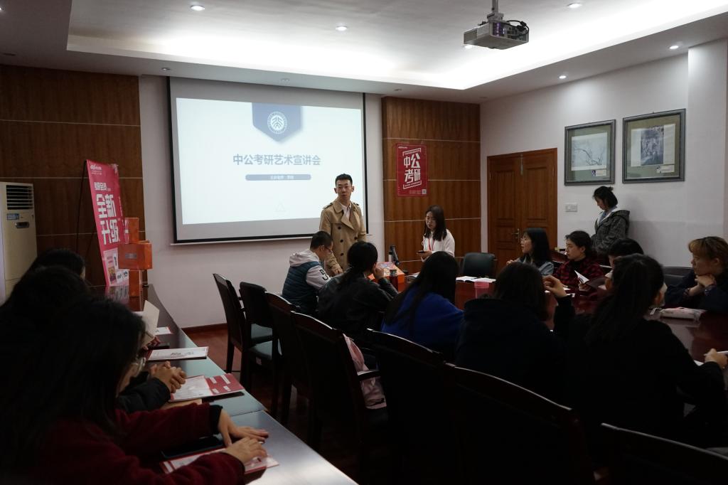 会议由中公考研辅导名师李硕主讲,他先是听取了学生们对于考研的认知,然后分别回答了关于学硕专硕区别、如何择校、如何备考、初试复试流程等重点问题。紧接着他对中国音乐史、西方音乐史、中国民族传统音乐的等学生所困惑的知识点进行了罗列讲解,鼓励同学们耐心学习迎接考研。