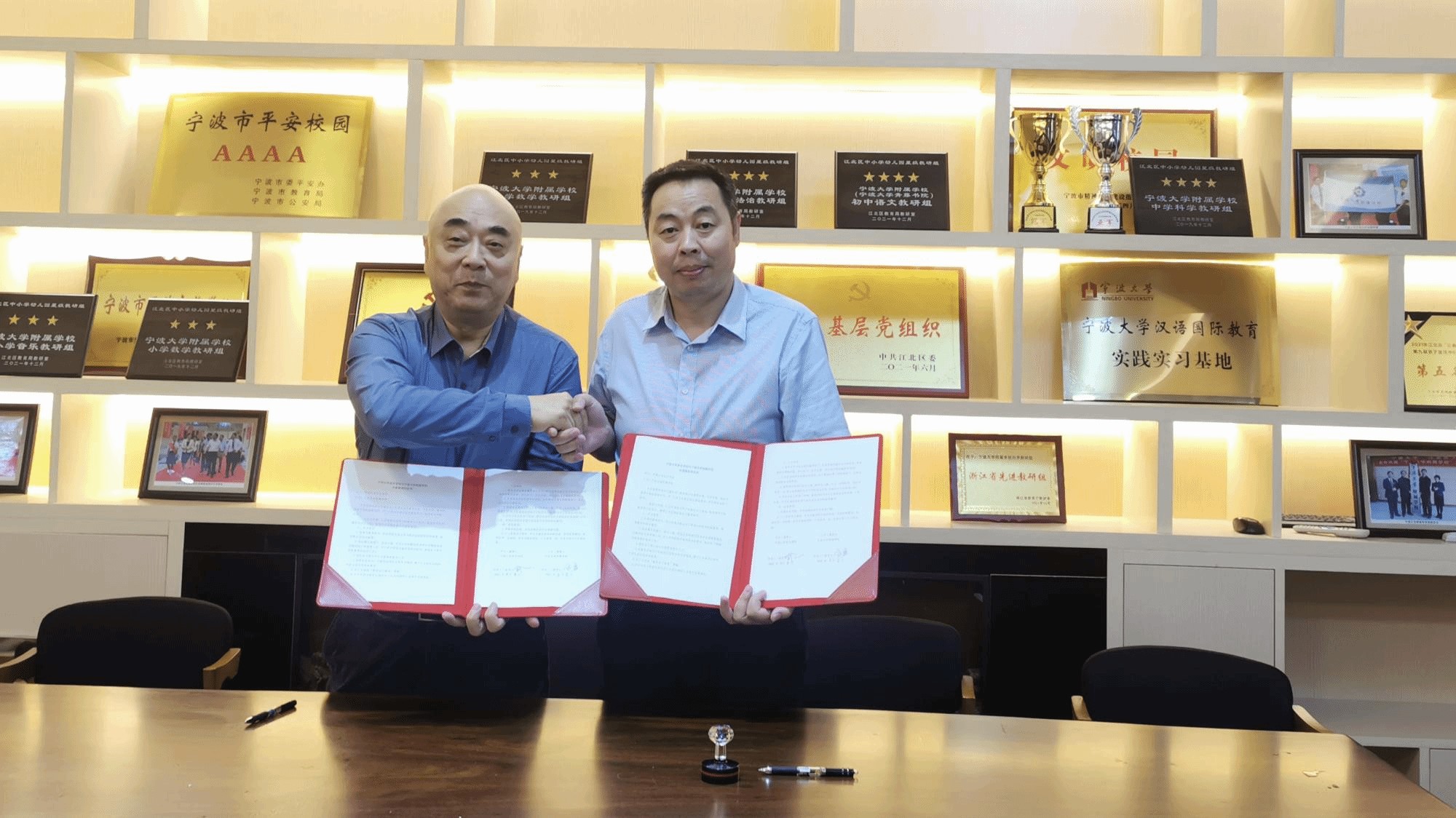 院长俞子正、党总支书记屠春飞带领大家与宁大附属学校校长余勇、副校长邵陈标、夏丹丹等党政领导进行了深入探讨与交流。