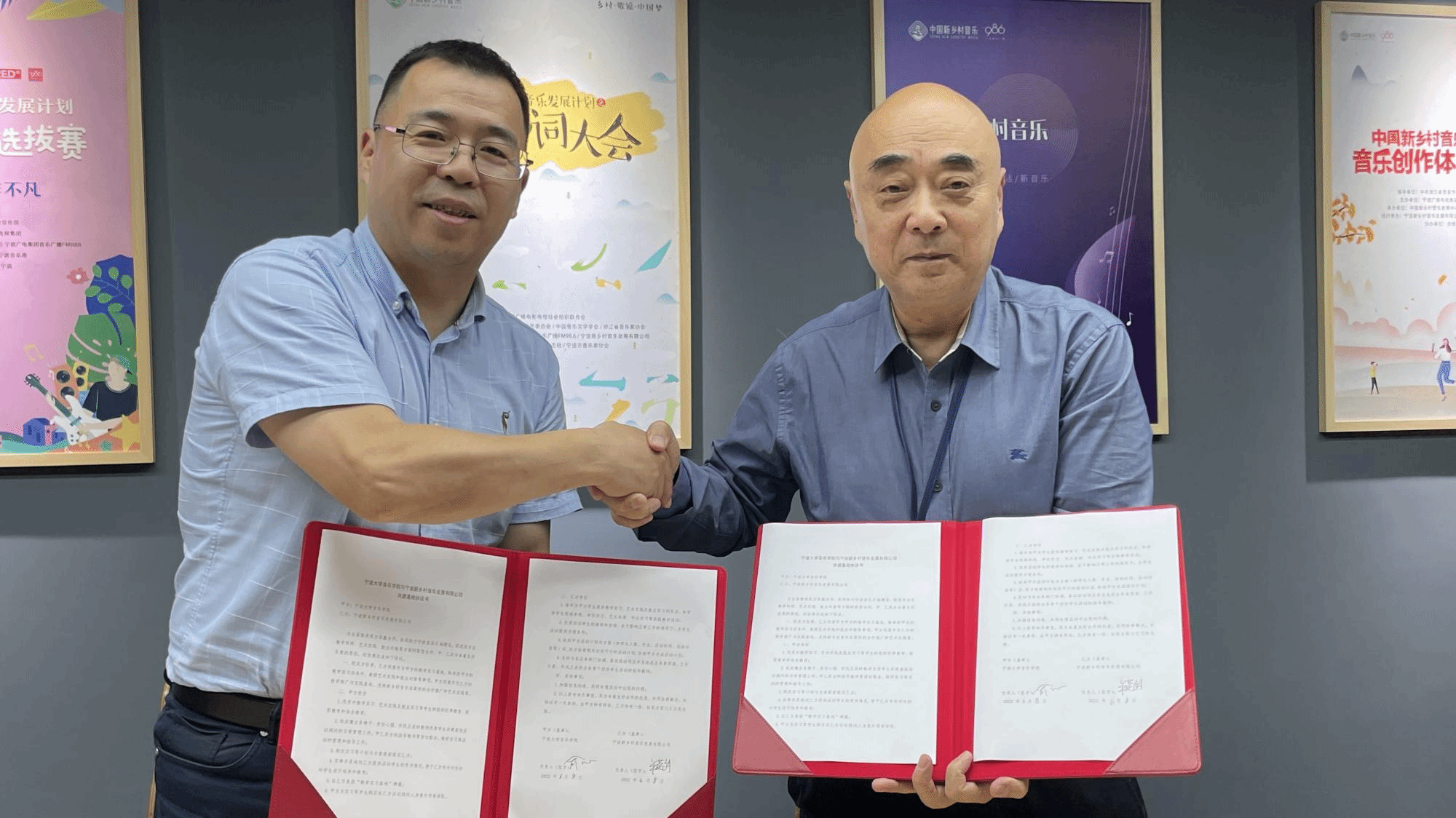 访企拓岗促就业行动的第二站赴宁波新乡村音乐发展有限公司。宁波新乡村音乐发展有限公司总经理牟英武等公司主要负责人接待了大家。牟英武总经理介绍了公司成立以来的发展,以及公司在发展过程中对一些相关专业人才的需求。俞子正院长和屠春飞书记从就业对接出发,介绍了学院情况和人才培养现状,接着双方就新乡村音乐盛典、社会实践基地、毕业生就业工作对接等进行了深入交流。会后,双方签订了共建基地协议并进行授牌仪式。