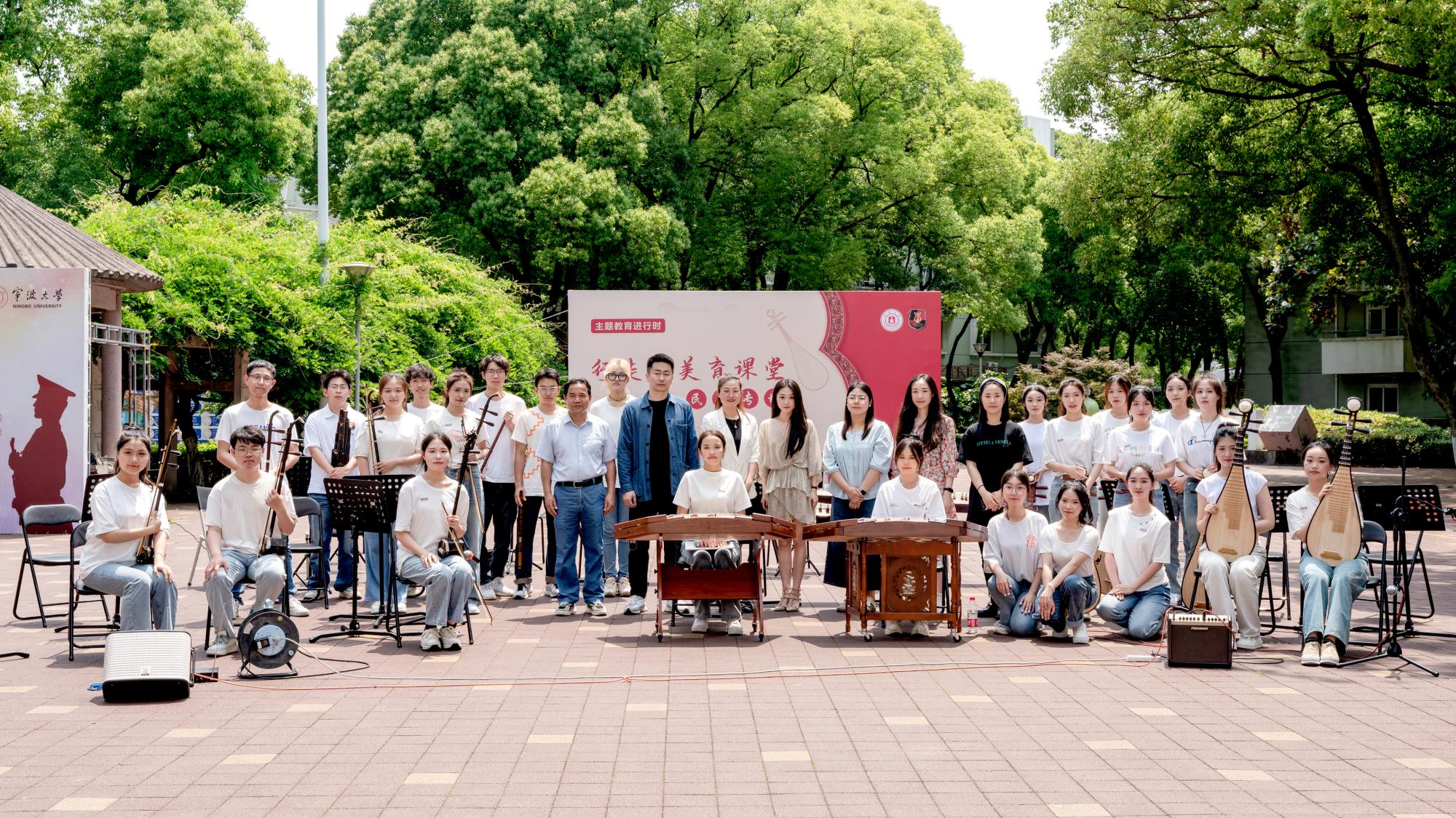 冬渡春来,夏至未至。时隔三季,“行走的美育课堂——民乐专场”于5月30日中午在有思广场再度开启。本次民乐专场跟随“主题教育进行时”大方向,秉持着体会百年伟大建党精神、坚定中华民族文化自信的美育理念,让宁大师生在琴声浸润中一起感受中国传统文化的音声之美。