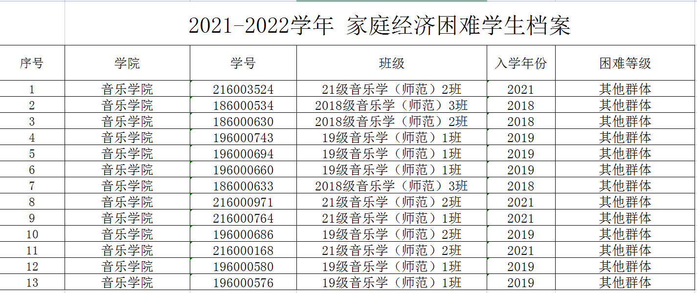 经学生本人申请、班级评议组评议、班主任审核、学工办审核确定,下列同学认定为我院2021-2022学年资助对象。现将名单予以公示(名单见下表),公示期三天(2021年10月8日-10日)。