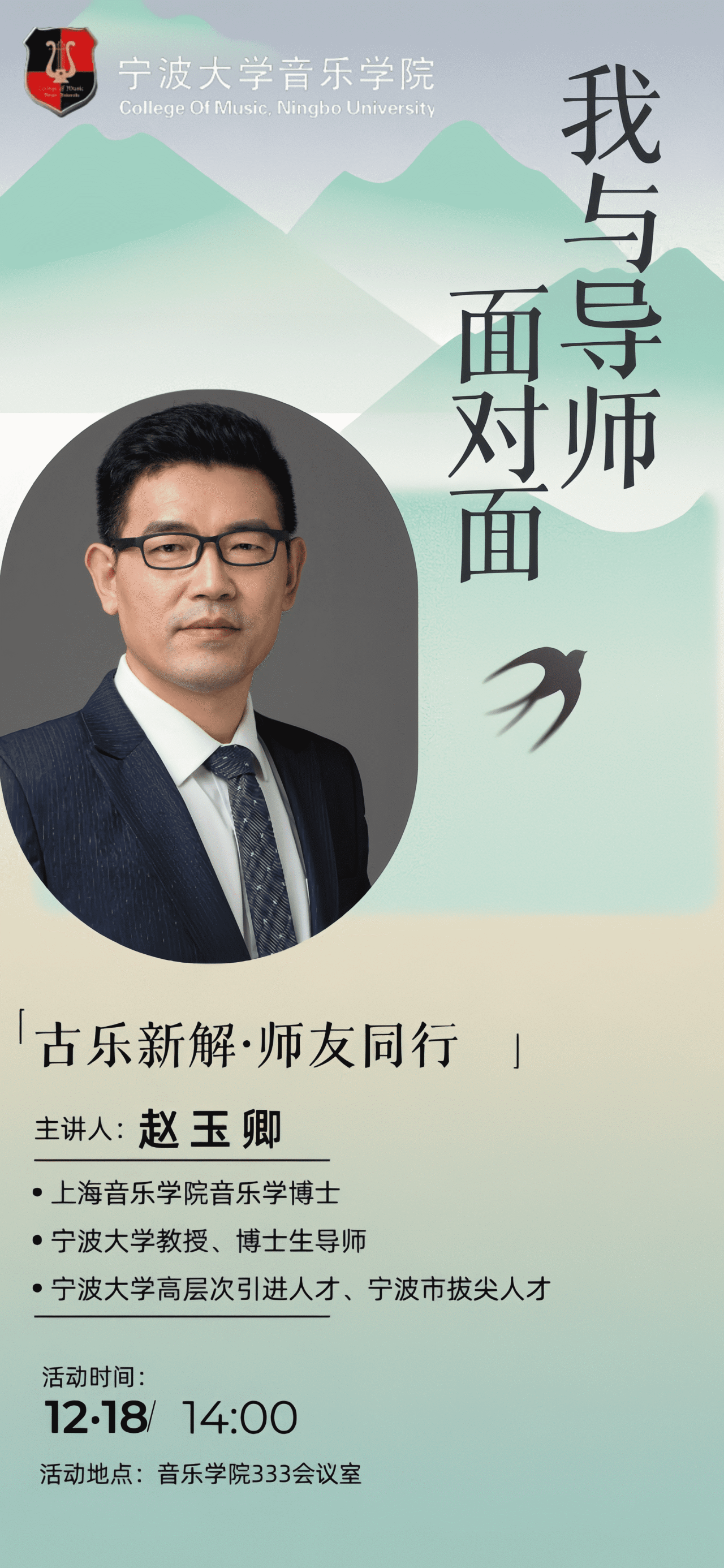 为进一步加强我院研究生与导师之间的沟通交流,培养学生的科研思辨能力,激发研究生的学术热情和探索精神,麻豆在线 即将举办“我与导师面对面”研究生思政品牌系列活动第18期——“古乐新解·师友同行”师生座谈会,本次特别邀请赵玉卿教授及其研究生团队,用新颖的视角解读传统曲目,让古老旋律焕发新生,讲述中国音乐史的独特魅力。诚挚邀请感兴趣的师生到场参与,期待与您在现场相见!
