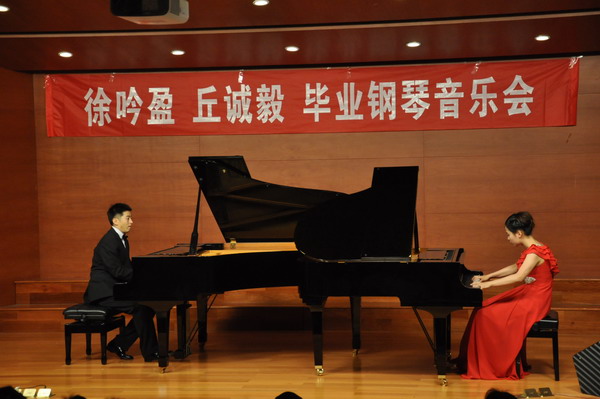 6月8日晚7点,我院音乐系2012届毕业生徐吟盈、丘诚毅钢琴音乐会在西校区小音乐厅举行。院长喻辉、院党委书记袁虹、院党委副书记叶春桥以及部分专业教师和百余位音乐爱好者观看了演出。