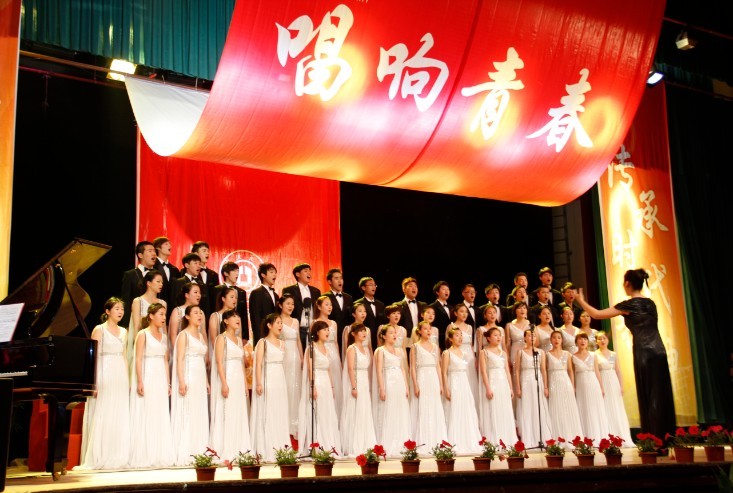 我院合唱队为五四青年节献礼的第一首歌曲是《美丽的草原我的家》,歌曲采用了蒙古族民间音乐的风格,既突出民族风格,又赋予新的时代气息。同学们以优美动人的嗓音,无伴奏合唱的方式进行演绎,指挥为08音乐的徐莹莹同学,仿佛让观众置身于“天苍苍,野茫茫,风吹草低见牛羊”的迷人景致中。一曲落罢,现场响起雷鸣般的掌声。接下来的这首《在灿烂的阳光下》将本次大赛推向了高潮。在周婷婷同学钢琴伴奏、赵冰玥同学的指挥下,我院合唱队在林杏琴会堂的舞台上完美演绎了这首充满爱国热情的歌曲,用朴实的歌声抒发着对中国共产党创建新中国的感激之情,仿佛是一位年轻人饱含深情地在娓娓诉说着长辈给予自己思想上的启迪,用饱满的激情讲述了中国共产党领导全国人民走过的风雨历程,赞颂建国以来所取得的伟大成就,整个表演充满了对祖国的赞美和满满的自豪感,代表全体艺院青年为五四青年节献上了最为真挚的一份礼物。