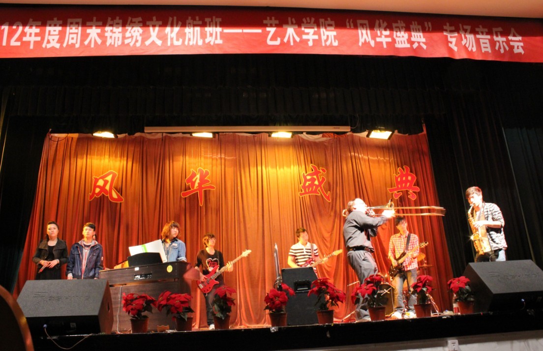 晚会在优美灵动的《年年有鱼》开场舞中拉开帷幕。晚会共分华丽唯美之难忘经典、时尚潮流之流行情怀、雅俗共赏之复古爵士这三大篇章。民乐合奏《新编金蛇狂舞》展示了艺院音乐系学子无限的创造力,以明亮悠扬的音调不断地呈现出欢乐、昂扬、奔放的情绪,让人耳目一新。后半段打击乐器引出更加热情昂扬而且流畅明快的旋律,令人感到充满生机而富有生命之活力。李全秀、胡玉苗同学等同学带来的《现代舞蹈串烧》集合了探戈、爵士、啦啦操舞等多种元素,展示了艺院青年无限的青春活力,将晚会推向了一个高潮。岳兵等同学带来的美声小合唱《春天的芭蕾》,她们用曼妙的歌声将现场的百余名观众带入音乐的世界,一片芳华之下,音乐在梦幻般的庄园中展开,起初是欢乐的咏叹调,白衣少女翩翩起舞,等待着幸福的降临,随着脚步起舞纷飞,跳一曲春天的芭蕾,天使般的容颜最美,尽情绽放青春无悔。一曲落幕,观众们雷鸣般的掌声是对这四位11级女生表演最大的肯定。而由我院外籍爵士乐大师TOM指导的学生爵士乐团带来的表演富有异域情调又不失俏皮与活力,《Mr.P.C.》和《Cantaloupe Island》两首复古爵士乐为本次“风华盛典”专场音乐会画上了圆满的句号。