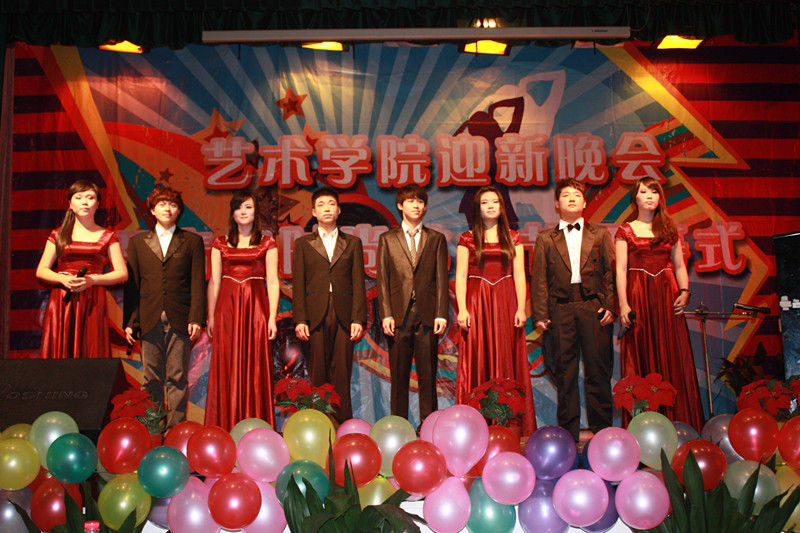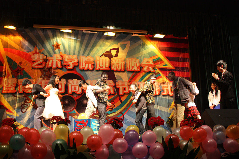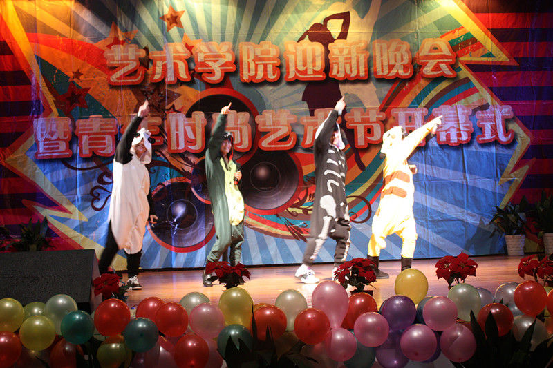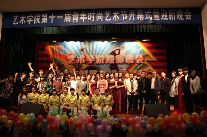 开场舞《Baby baby》点燃了全场,舞蹈演员隐藏在观众身边,与台上的演员相印成趣,如此新颖、创意的开场方式引得台下观众欢呼声连绵起伏。第一篇章《新蕊待放》的演员全部由大一新生组成,他们的自信与热情向大家展示了新蕊般的生机和活力。帅气的萨克斯表演,将整场晚会推进了第一个高潮。第二篇章星光熠熠,被观众评为最好看的一个篇章,小组唱《海芋恋》可爱的动物连体衣,小合唱《相亲相爱》铿锵的歌喉,男女对唱《老男孩》以及啦啦队舞蹈《Oh!》中迷人的艺院美少女团给观众们留下了深刻的印象,T台秀更是展示了艺术学院专业的服装设计功力和舞台表演设计的创意,更有来自国际交流学院的主唱阿里以及帅气美丽的模特Pigar和Fany用礼服向观众们展示了异域风情。一场由黑人朋友阿里以及印尼的Pigar、 Fany和现场观众的国际组合挤气球大赛将晚会推向了另一个高潮。11音乐专业余谓松扮演“宁大李玉刚”,悠扬婉转的嗓音唱出了贵妃醉酒的迷人与妖娆。最后一曲《祖国我为你干杯》表达了艺院学子对爱国强校之志、青年担当之誓。伴着《我的未来不是梦》的激情旋律第十一届青年时尚艺术节开幕式暨迎新晚会圆满结束。史无前例的爆棚人气和高水准的节目质量,充分展现了我院学子青春时尚的活力和艺飞冲天的激情!