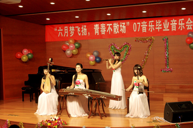 音乐会在小合唱《今夜无眠》的歌声中拉开序幕,笛子独奏《扬鞭催马运粮忙》、女声二重唱《待到微风轻轻吹过》、古筝独奏《秋夜思》、民乐合奏《好一朵茉莉花》、男声独唱《重归苏莲托》、钢琴四手联弹《匈牙利舞曲第五号》、女声独唱《维利亚之歌》等节目风格各异、精彩纷呈。音乐系毕业生以美妙的歌喉、悠扬的琴声、极具艺术感染力的表演征服了现场观众,博得观众们阵阵热烈的掌声。