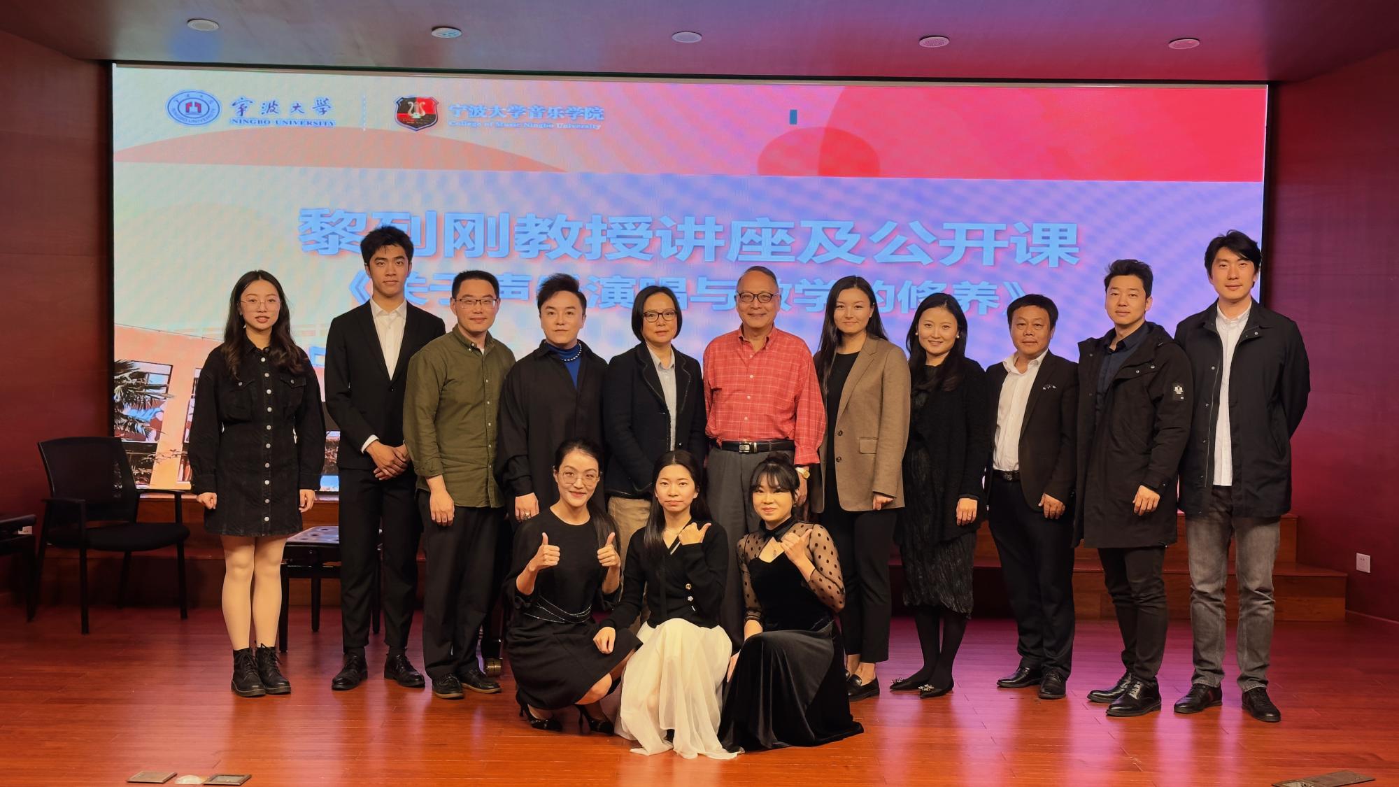 西区小音乐厅为我院进行了题为《关于声乐演唱与教学的修养》的学术讲座。讲座内容从“咬字要规范、把歌唱气息变成平时生活的常态、把高位置的发声作为生活的常态、关于歌唱的意境”四个方面与师生们分享了自己的艺术实践与理论所获,并于师生们进行了问答的互动交流。公开课环节中,黎教授耐心细致地对四位本科、四位研究生从歌唱语言、发声技巧、艺术表达等方面进行了悉心指导。