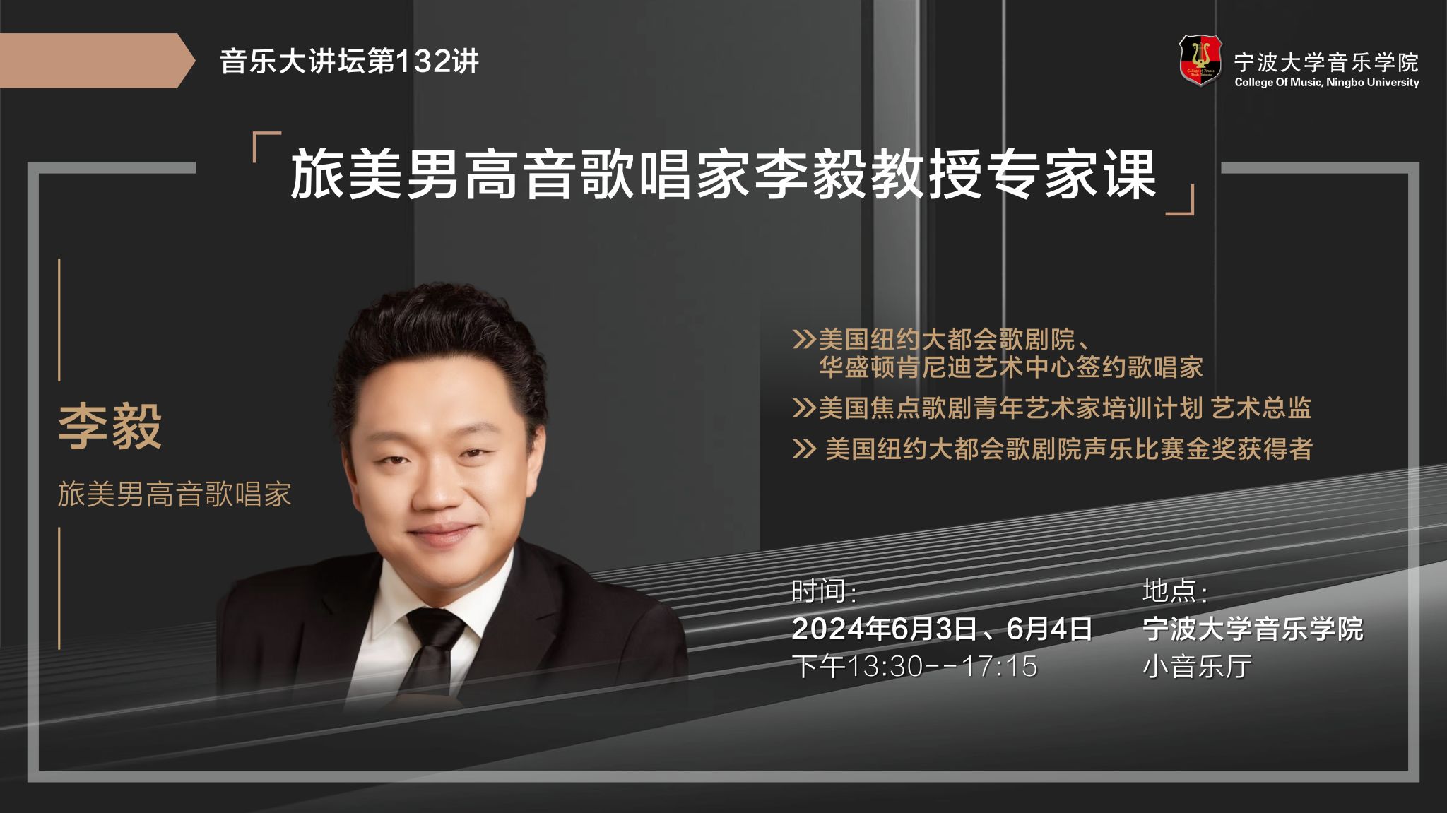 2024年6月3日、6月4日下午,旅美男高音歌唱家,美国纽约大都会歌剧院、华盛顿肯尼迪艺术中心签约歌唱家,美国焦点歌剧青年艺术家培训计划艺术总监,美国纽约大都会歌剧院声乐比赛金奖获得者李毅教授在麻豆在线
