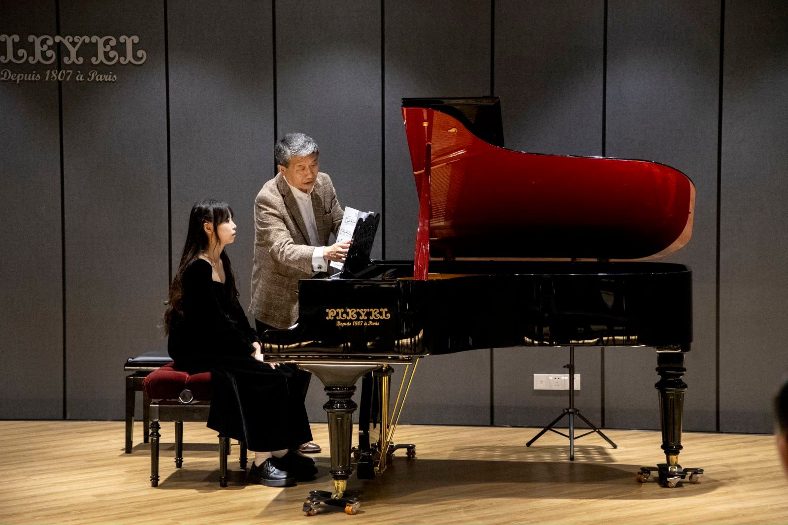 钢琴教授,键盘教研室主任并兼任孟诺中学音乐附中校长潘洵教授主讲,吸引了众多音乐爱好者与钢琴学子前来聆听学习。在课程中,潘洵教授针对五位学员的演奏进行了深入细致的点评与指导,其精湛的专业素养与独到的音乐见解赢得了在场观众的阵阵掌声。