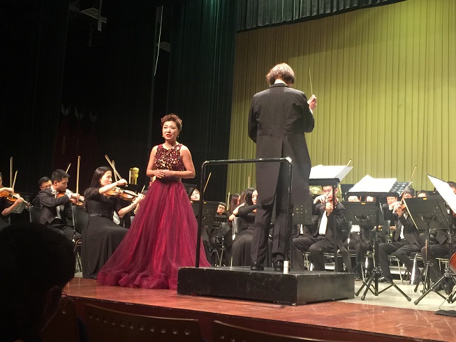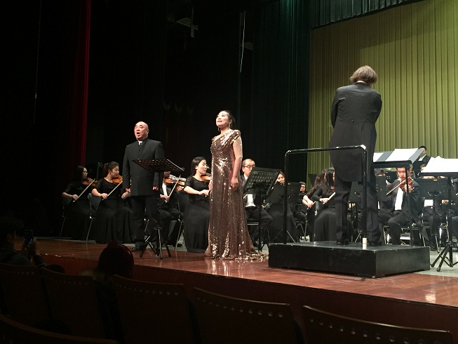 院长俞子正教授。他用悠扬、辽远、高亢和极具感染力的长调,将《鸿雁》中对亲友重逢、聚会的珍视与不舍的情感情漓尽致地表达了出来,让现场观众回味无穷。高昂的旋律配合激情的演唱,将现场的气氛推向最高潮。最后,音乐会在歌唱家集体登台献唱中圆满结束。