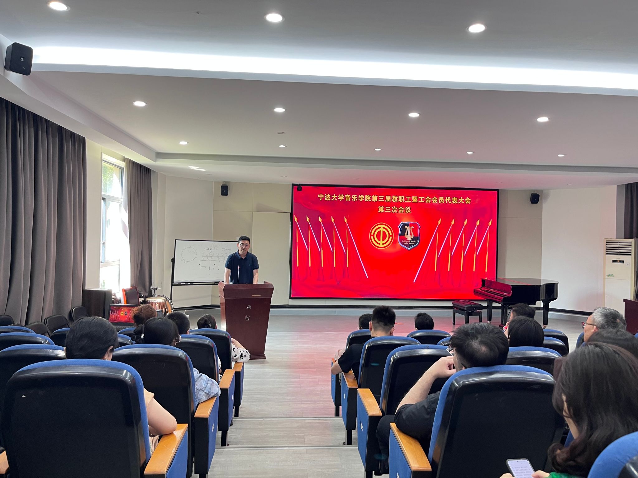 第三届第三次教职工暨工会会员代表大会在阶梯一召开,会议由麻豆在线