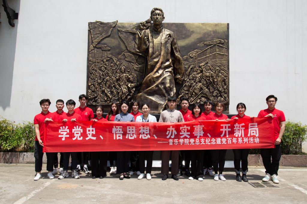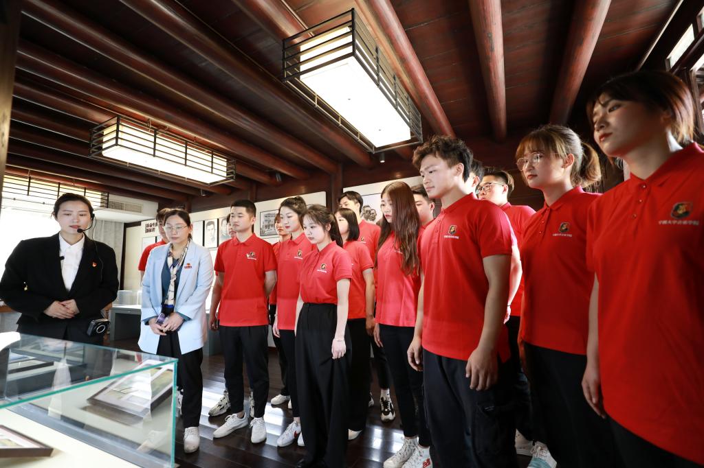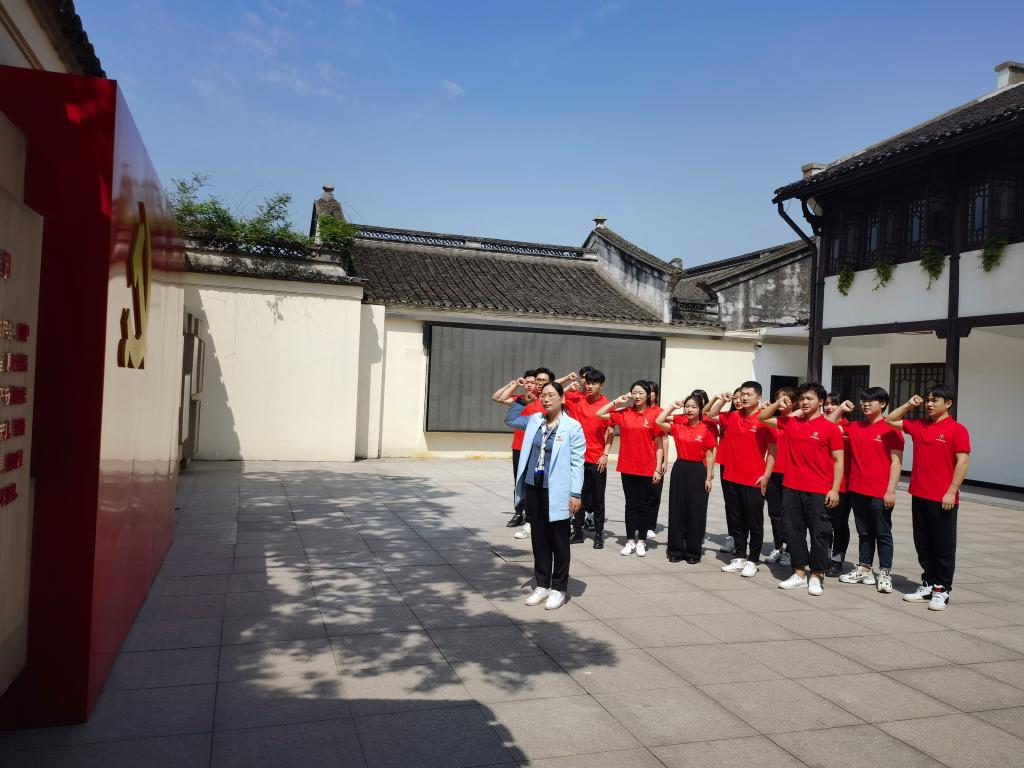2021年4月9日上午8:30 ,麻豆在线 党总支书记屠春飞与红色文艺轻骑队成员在麻豆在线 西区小音乐厅集合,前往张人亚故居参观学习,听学堂讲解员讲述张人亚守护党章的故事。