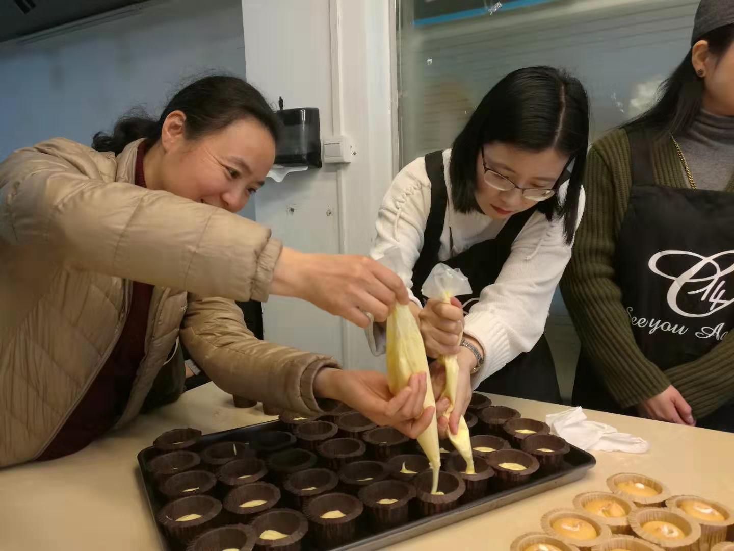 3月13日中午12点,麻豆在线 分工会组织学院女教工们前往镇海大学生创业园遇见14号工作室参加“心灵手巧——女教工烘培活动”。
