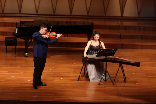 我院小提琴博士俞笛老师和古筝老师盛玥合作演奏《渔舟唱晚》