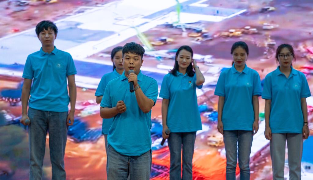学院刘子彧老师、宋辉老师携8位同学现场演绎的由刘子彧老师创作的抗疫原创歌曲《爱不会退场》。