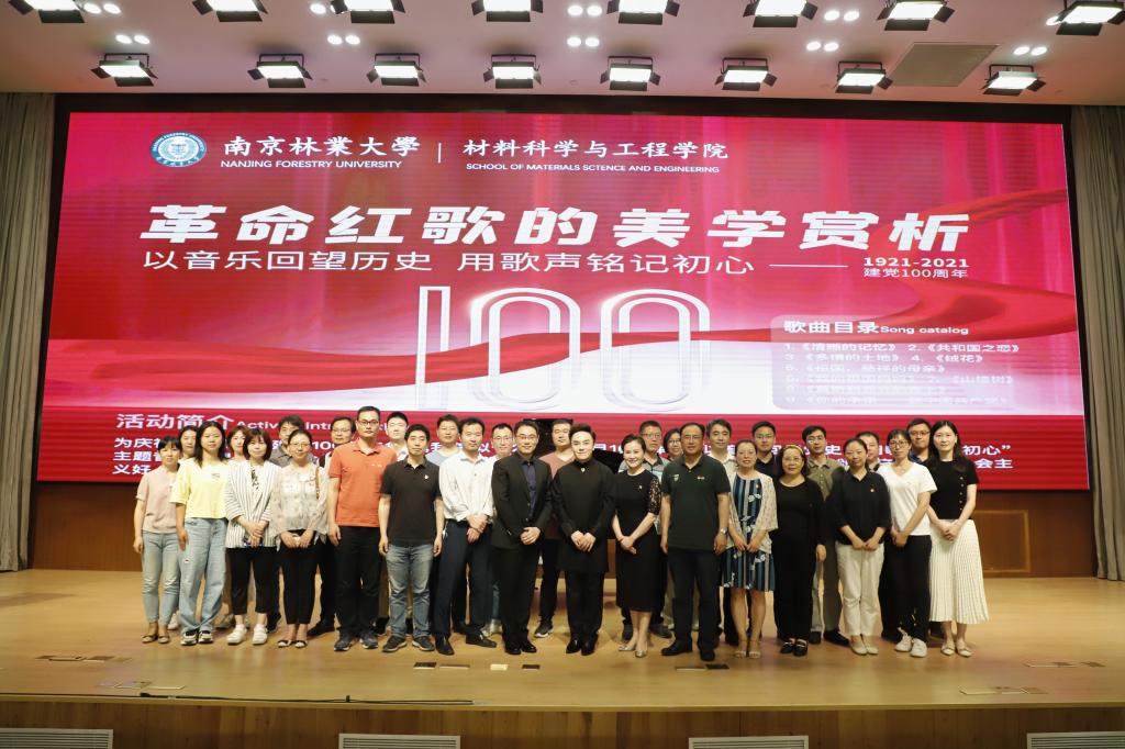 国家一级演员、高男高音歌唱家肖玛副教授、张东方博士出席了该院革命红歌的美学赏析主题音乐党课。党课主旨“用音乐回望历史,用歌声铭记初心”,目的是通过经典红歌来感悟党的光辉历史,品味经典歌曲中所镌刻的时代印记,更加铭记历史,更加用心体会红色精神,牢记使命,汲取奋进力量,讴歌祖国、讴歌人民、讴歌中国共产党,唱响中国特色社会主义好、伟大祖国好的时代主旋律。南京林业大学党委副书记王培君,贵州师范大学副校长乙引,南京林业大学材料科学与工程学院院长梅长彤教授、党委书记成铁龙等全程聆听党课。参加党课的还有材料学院全体教职工党员、部分大学生、研究生党员代表,以及材料学院共青团外建单位锁金村小学45名小学生朋友。南京电视台、现代快报等新闻媒体到活动现场进行了采访和报道。