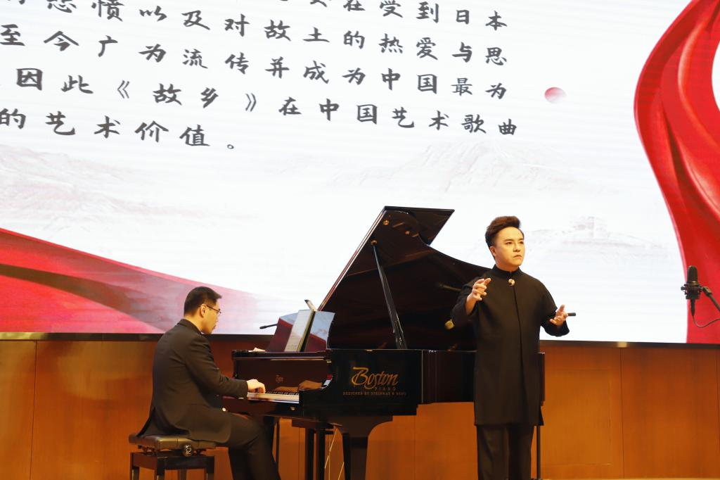 女高音歌唱家范双燕博士先后合作演绎了《唱支山歌给党听》《故乡》《我的祖国妈妈》《多情的土地》《绒花》《清晰的记忆》《生死相依我苦恋着你》等14首经典作品,他们不仅进行了完美的现场演绎,还给广大师生讲授了每部作品的创作背景、艺术内涵、表现手法以及社会意义等内容,尤其是党课结束后,在座的广大师生专注聆听,没有一个人离开座位,最后在大家的要求下,肖玛老师和范双燕老师又带领大家合唱了一首《我和我的祖国》,最后党课在现场500多位师生的齐生合唱声音与雷鸣般的掌声中结束。材料学院成铁龙书记在总结发言中指出,“今天肖玛等三位老师给我们学院广大师生上了一堂史无前例、洗涤灵魂、回音绕梁的音乐党课,让我们更加珍惜今天这来之不易的幸福和安详。”