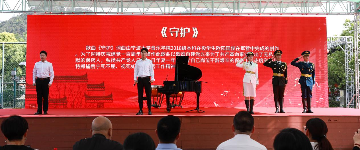 2018级本科在役学生欧阳国俊在军营中完成的创作。由李含笑、张恩源以及军辉战友团的詹志康、田珂菲、张景强同学共同演绎。谨作此歌曲以歌颂自建党以来为了共产革命事业做出了无私奉献的保密人,弘扬共产党人日复一日年复一年地坚守自己岗位不辞艰辛的保密工作态度和被敌特抓捕后宁死不屈、视死如归的保密工作精神。演唱者李含笑同学说:“听说今年是宁大军辉战友团成立20周年,一直觉得他们很帅,通过这个节目的演绎,更是深深体会到了他们作为军人的坚忍和坚韧,用这样的方式向保卫和平的中国人民解放军致敬,我觉得特别荣幸。”