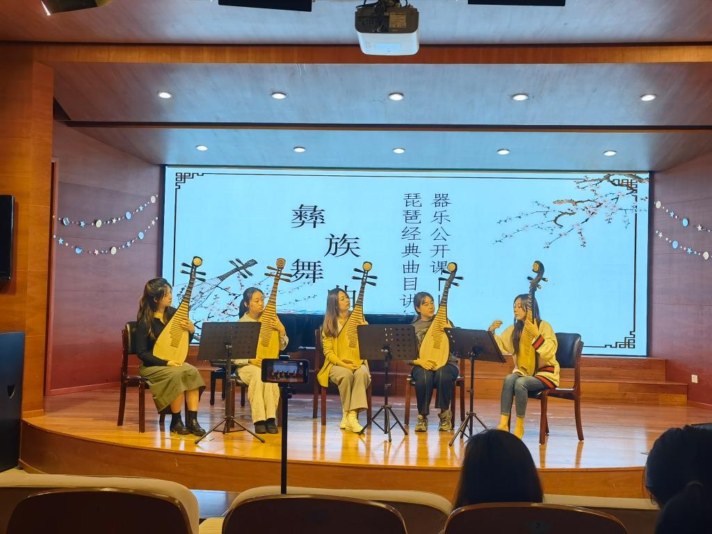 此次公开观摩课的课程名称是《器乐》,该课程是以选修琵琶专业的学生为授课对象,教学内容以著名琵琶演奏家王惠然作曲的《彝族舞曲》为例,徐老师细心讲解其曲目的内涵并亲身示范,对于学生的演奏要点作出了重点指导,赢得了学生们和在场观摩老师的一致好评。课后,我院教学督导钟青老师主持了课堂经验交流研讨,相关专业老师对徐老师的上课情况给予了高度评价,其他学院的青年教师也发表了自己对这堂器乐课的自身理解,同时表示此次公开观摩课充分展示了我院教师的教学风采,为广大教师提供了很好的学习和交流平台。
